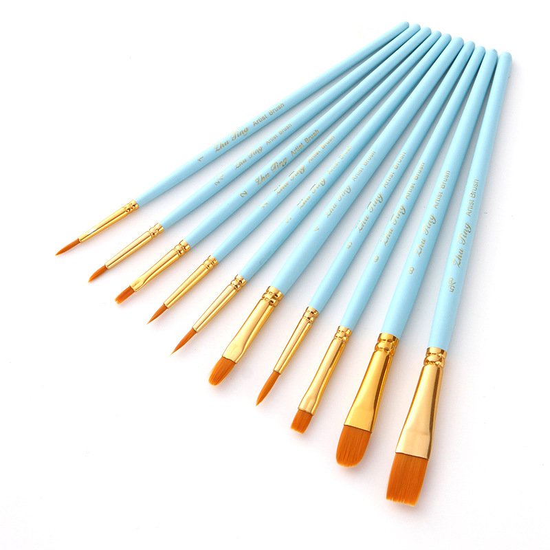 Giới thiệu [10 cọ] Set Cọ Chuyên Dụng Để Tô Vẽ Tranh Sơn Dầu Số Hóa, Màu Nước Acrylic