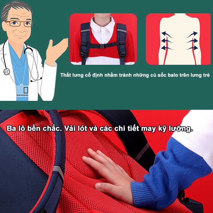 Balo học sinh được may bằng chất liệu vải cao cấp, phong cách Đức và Châu Âu, có khả năng kháng khuẩn, an toàn cho trẻ. Balo có khả năng chống thấm, dễ lau chùi không chỉ giúp bảo vệ vật dụng bên trong mà còn tiết kiệm được nhiều thời gian vệ sinh sản phẩm.