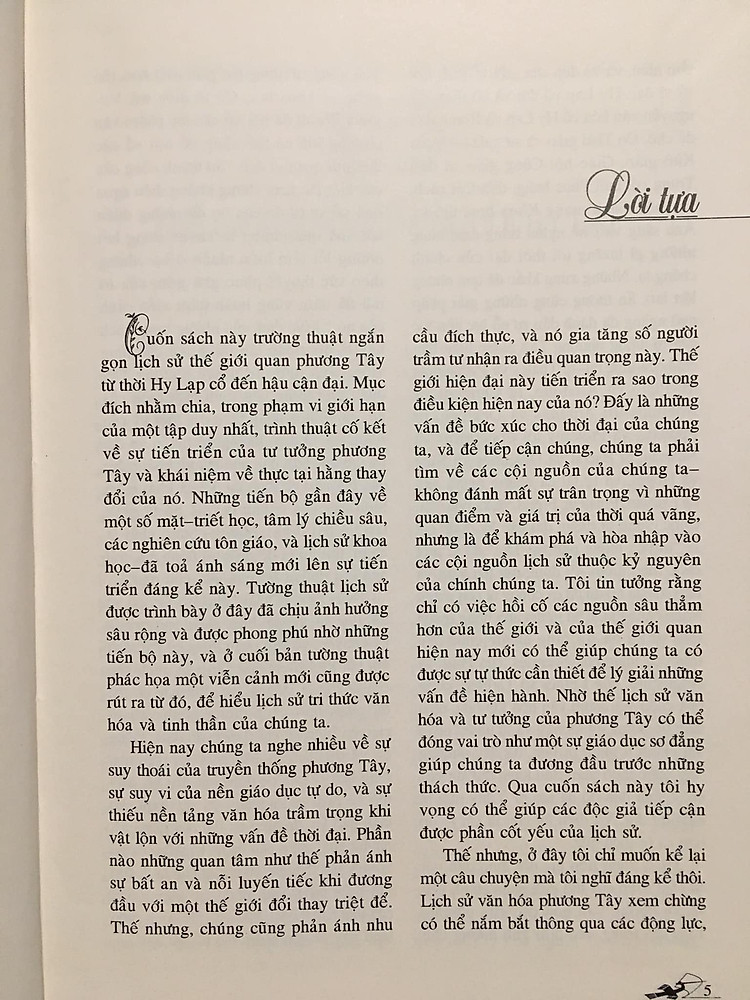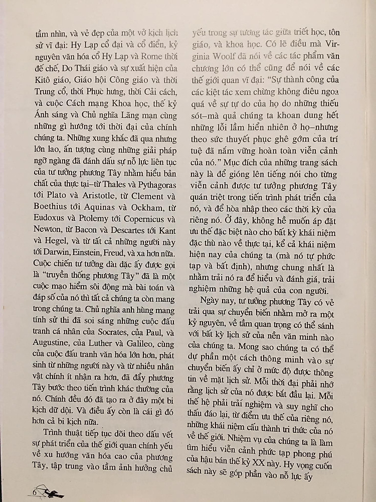 Một công trình biên soạn công phu với nhiều tra cứu và tham khảo nghiêm túc theo suốt chiều dài lịch sử hình thành, chuyển hóa và phát triển của tư tưởng phương Tây. Tác giả đã trình thuật cuộc hành trình tri thức luận vĩ đại của tư tưởng phương Tây từ khi triết học sinh ra từ ý thức huyền hoặc Hy Lạp cổ đại qua thời cổ điển, trung cổ và những kỷ nguyên cận đại, tới thời hậu cận đại của chúng ta: