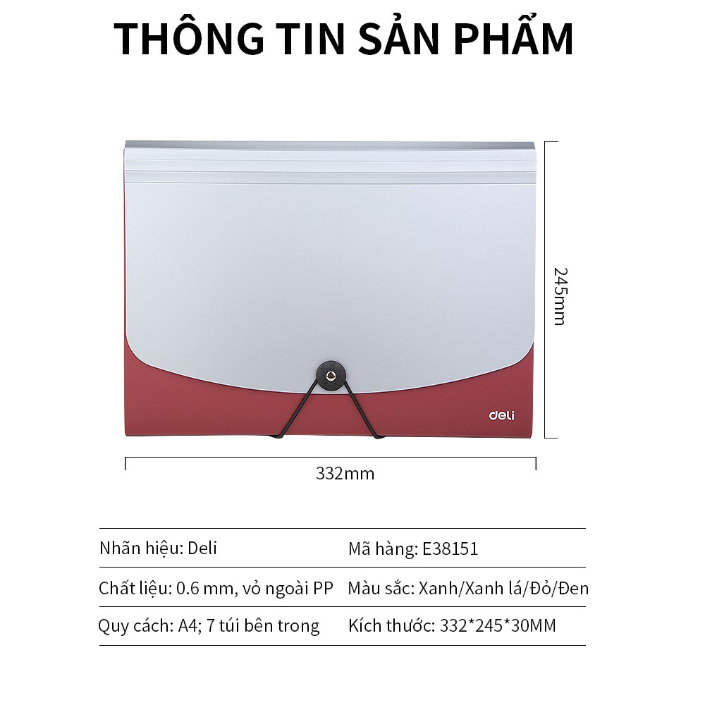 Văn Phòng Phẩm > Thiết Bị Trường Học > Dụng Cụ Lưu Trữ Giấy Tờ || Cặp tài liệu 7 ngăn Deli 38151