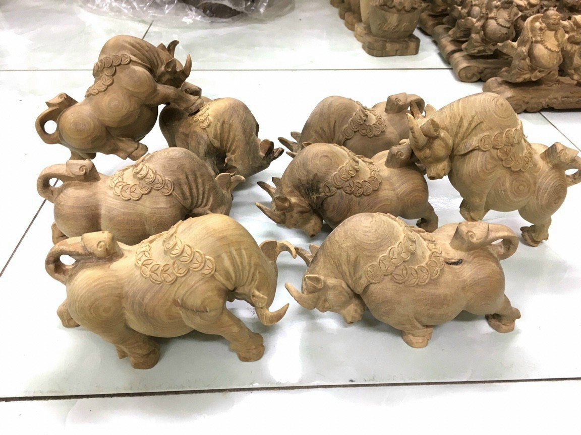 _ Cặp bò tót được trạm khắc vô cùng tỉ mỉ tinh sảo kỳ công .Đi hầu hết tất cả mọi chi tiết góc ngách nội dung hoa văn của tượng .Đều được ngọt tỉa chỉnh sửa hoàn toàn bằng tay thủ công .Đồng thời tượng được kiểm định vô cùng lưỡng như thẩm sấy cho gỗ khô kiệt .Mục đích trống dập nứt vênh mo mối mọt cho vào trà nhám đánh giấy giáp sạch sẽ ,sờ mát lạnh .Song cho phun lót làm bóng mờ để giữ lại mầu sắc vân gỗ tự nhiên .Tượng được làm và hoàn thiện do bàn tay khối óc tài hoa .Từ những người thợ giàu kinh kinh nghiệm ,cũng như tay nghề cao trong làng nghề truyền thống .Chính vì thế cặp bò tót đã đáp ứng đầy đủ những tiêu trí ( Đẹp bền rẻ ) Thẩm mỹ nghệ thuật với chất lượng tuyệt vời