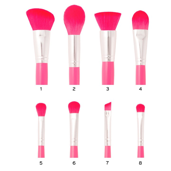 Bộ bàn chải tinh vi này chứa tám bàn chải thanh lịch, màu hồng được xử lý. Các lông mềm, tổng hợp là hoàn hảo cho việc tạo ra một loạt các ngoại hình. Tất cả các bàn chải đều có vỏ bọc da màu hồng hợp thời trang và hợp thời trang, đôi khi là một người bạn đồng hành an toàn và một người giữ bàn chải thuận tiện