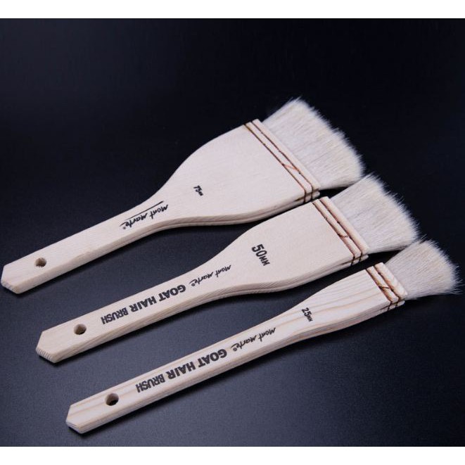 - Cọ bản lớn Mont Marte có cán cọ làm từ gỗ thông , lông cọ là lông dê , có độ ngậm nước tốt , ít rụng lông ,sử dụng để đi các mảng lớn hoặc để bồi giấy