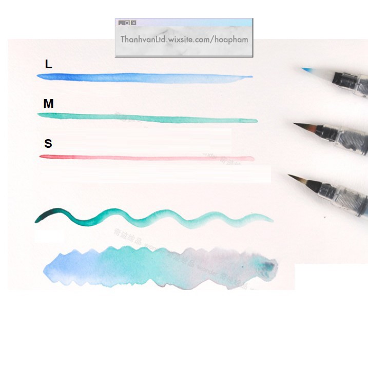 Lưu ý: Bút không tự dẫn nước ra đầu cọ, bạn phải bóp vào thân bút để đẩy nước ra.
