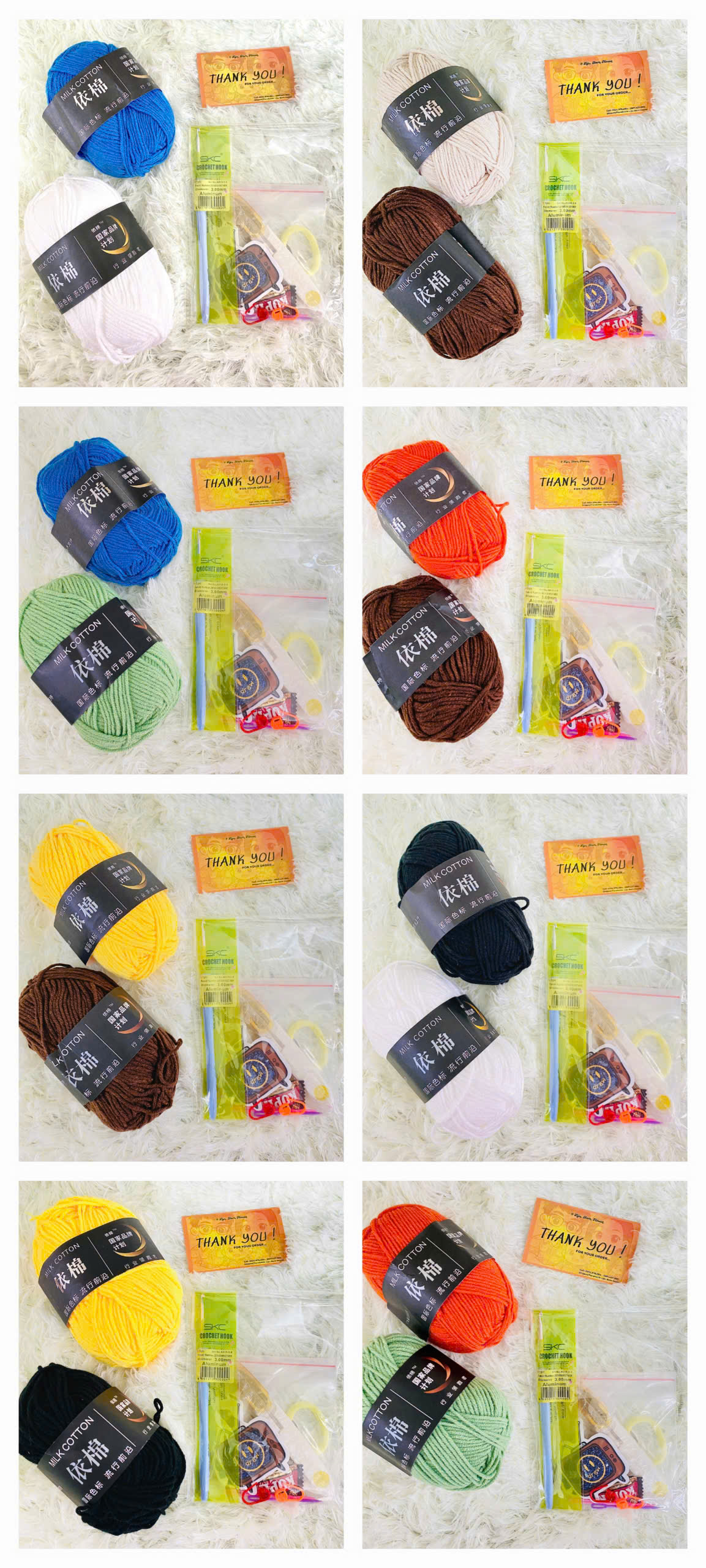 Len Milk Cotton mềm, ít xù, an toàn. Dễ mang theo, gọn nhẹ, đủ dụng cụ để làm móc khóa, thú len nhỏ, hoa len,...