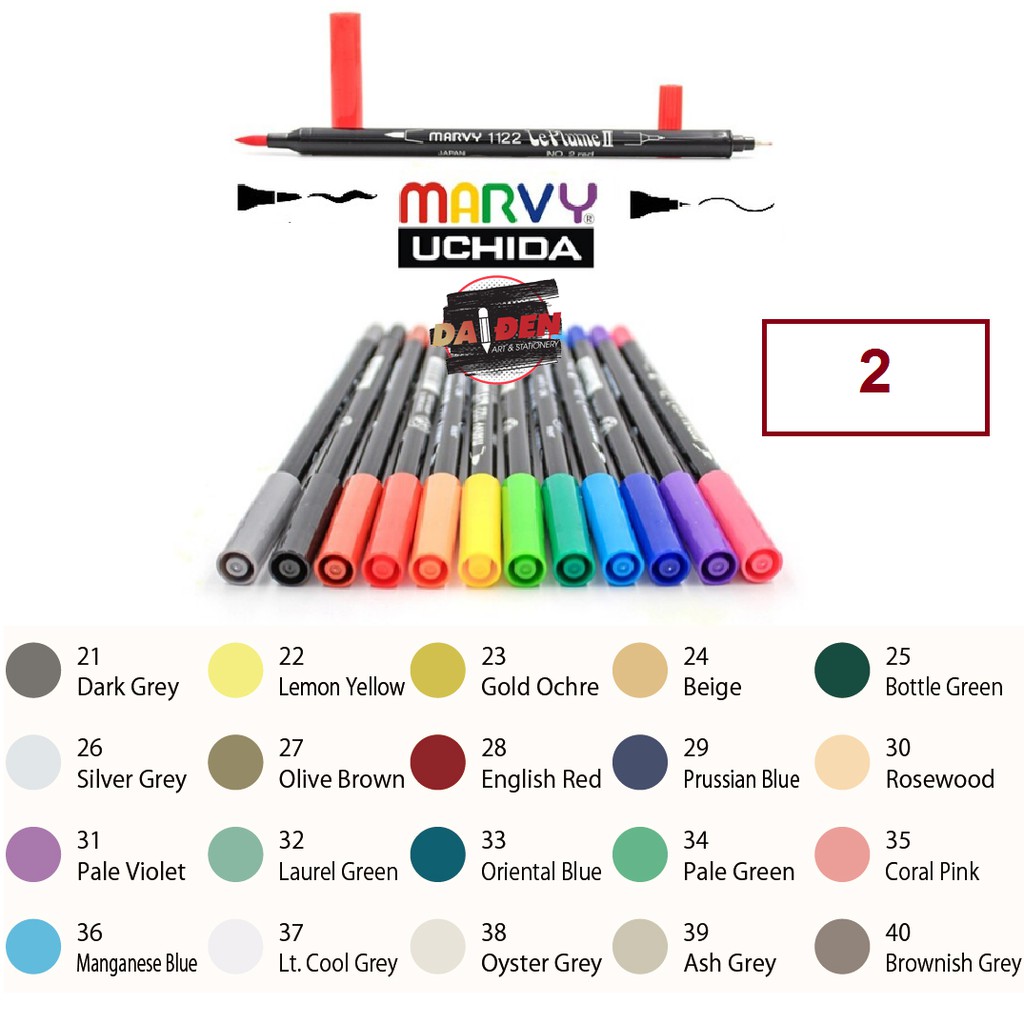 Giới thiệu [DA ĐEN] Bảng 2 (Màu 21 Đến 40) Bút Marrvy Brush LePlume II