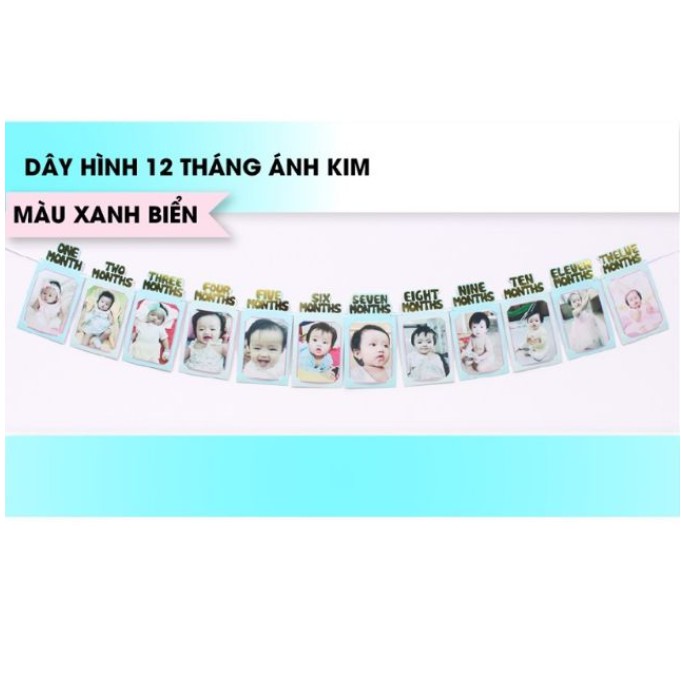 Nhà cửa & Đời sống > Trang trí nhà cửa > Khung ảnh & vật trang trí tường || Dây khung hình Ép kim 12 tháng trang trí sinh nhật thôi nôi bé (kèm dây treo)