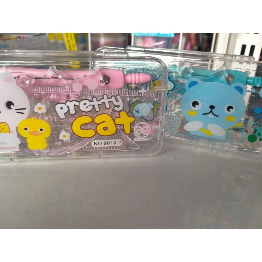 👉 Set đầy đủ bao gồm: 1 compa chì kim, 1 hộp ngòi chì kim, 1 gôm tẩy cao su, 1 thước đo độ, 1 eke vuông, 1 eke đều, 1 thước kẻ hình chữ nhật dài 12cm. Tất cả đựng trong một hộp bút nhựa mini tiện dụng