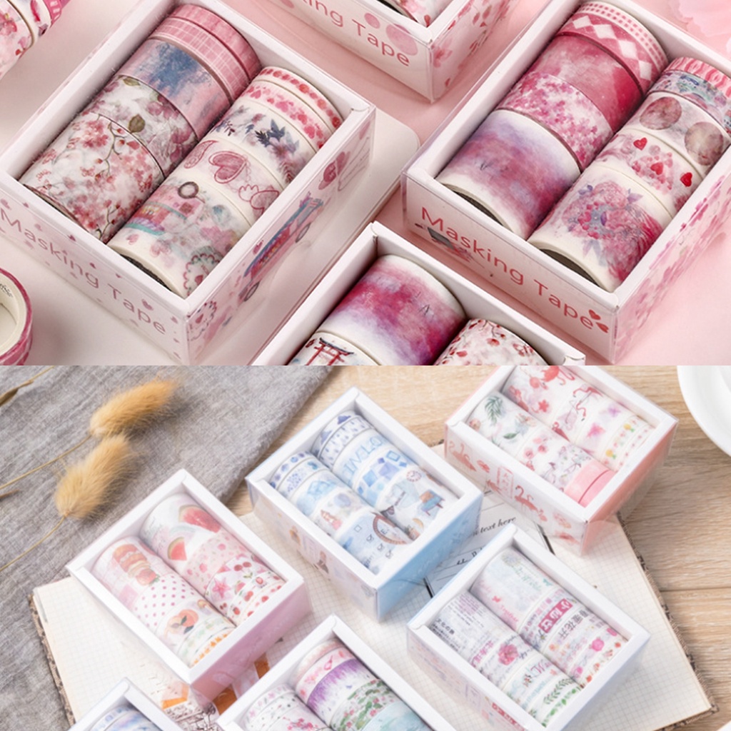 Văn Phòng Phẩm > Thiết Bị Trường Học > Dây & Băng Keo Dán || Hộp 10 cuộn washi tape nhiều mẫu tự chọn trang trí sổ tay