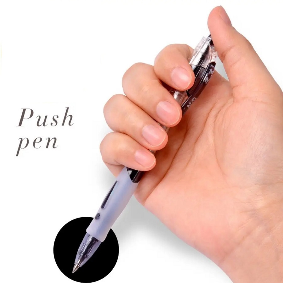 - Đầu bi 0.5mm cao cấp giúp mực trợn mượt. Vỏ bút làm bằng nhựa trong dễ dàng kiểm tra lượng mực của bút.