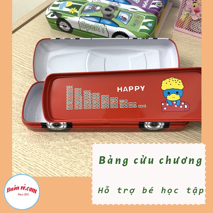 - Hộp bút ôtô 2 ngăn kim loại cho bé được chia làm 2 ngăn, giúp các bé phân chia đồ dùng hợp lí và tiện lợi - Bên trong nắp hộp có in bảng cửu chương, hỗ trợ bé học tập