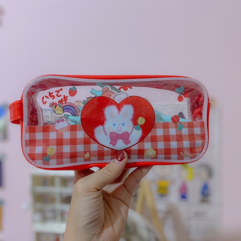 Văn Phòng Phẩm > Thiết Bị Trường Học > Hộp Bút || Hộp bút trong suốt hoạ tiết thỏ có quai xách - Bóp viết đa năng