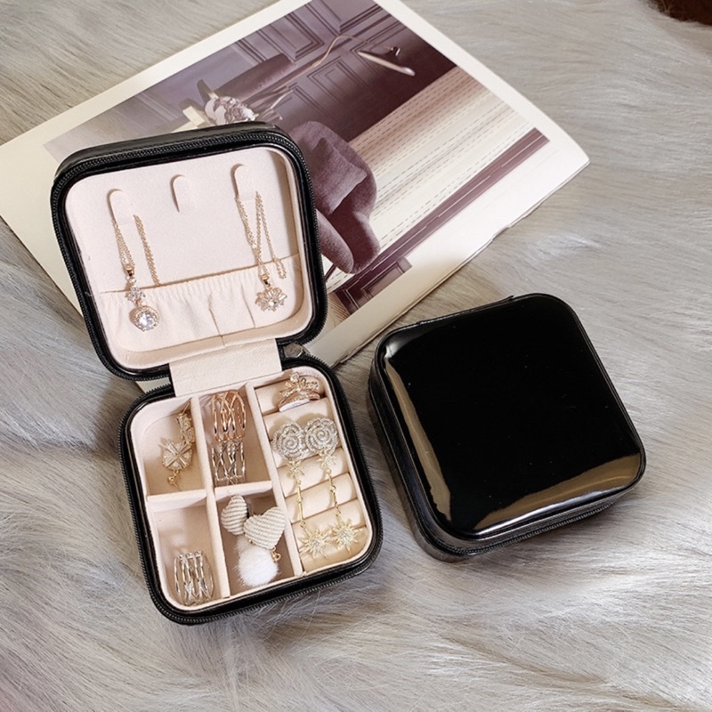 🍓 Hộp đựng đồ trang sức nữ trang da cao cấp treo khuyên hoa tai vòng tay nhẫn mini để bàn, đi du lịch picnic