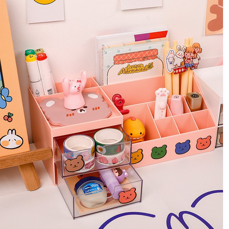 Hộp đựng Washi, note, kẹp giấy, vật dụng học tập kiêm cắm bút vvv.... bằng nhựa để bàn phong cách Hàn Quốc với thiết kế đơn giản nhẹ nhàng nhưng vẫn dễ thương giúp bàn học của bạn gọn gàng xinh đẹp.