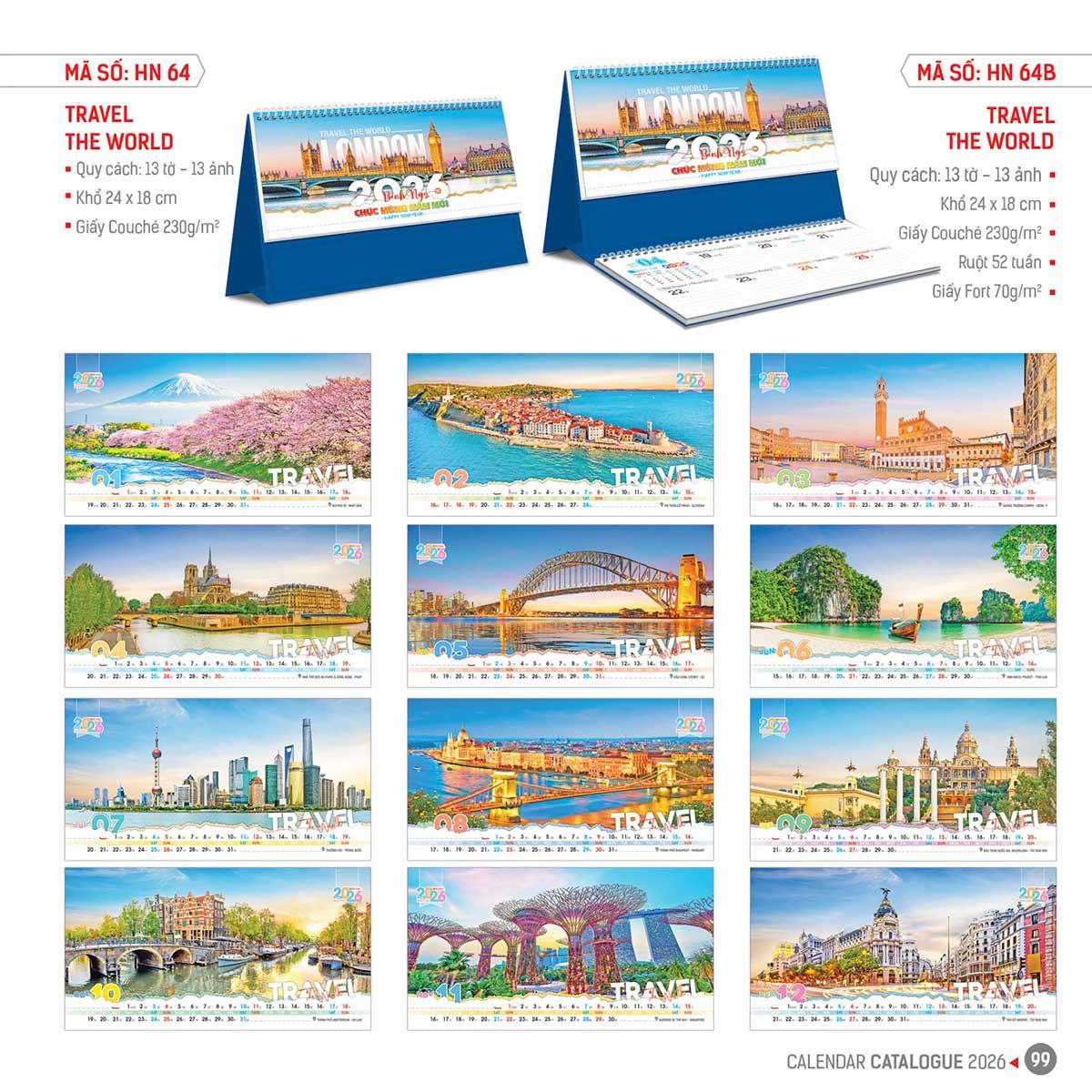 Lịch được in trên giấy dày, sắc nét, màu sắc rõ ràng, không lem mực. Các mẫu thiết kế đa dạng: từ phong cảnh, tối giản đến phong cách dễ thương - phù hợp cho văn phòng, học sinh, sinh viên và cả làm quà tặng.