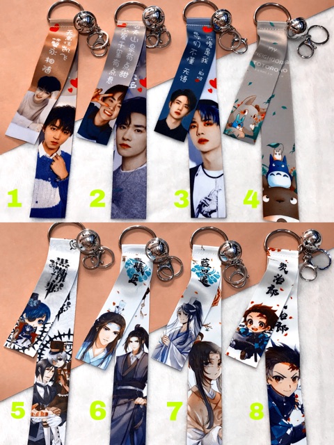 Sở thích & Sưu tầm > Quà Lưu Niệm > Móc Khoá || Móc khoá dây chuông ảnh thật Vương Tuấn Khải, ma đạo, Kimetsu, Totoro
