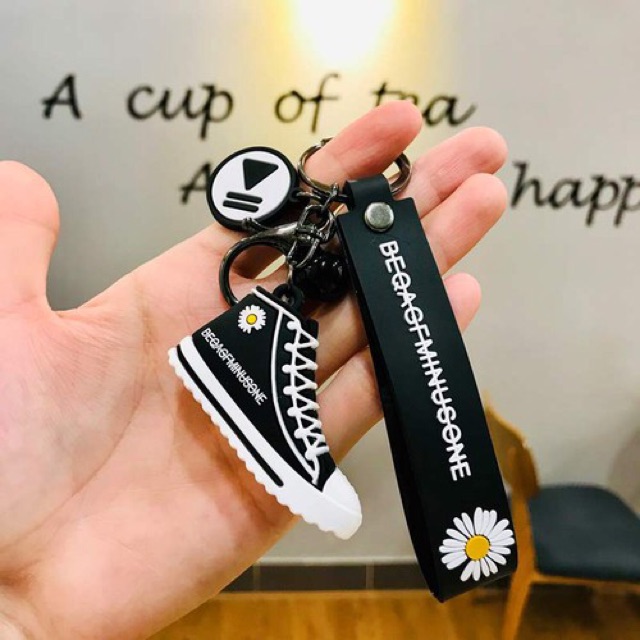 Sở thích & Sưu tầm > Quà Lưu Niệm > Móc Khoá || Móc khoá giày hoa cúc Converse full đen