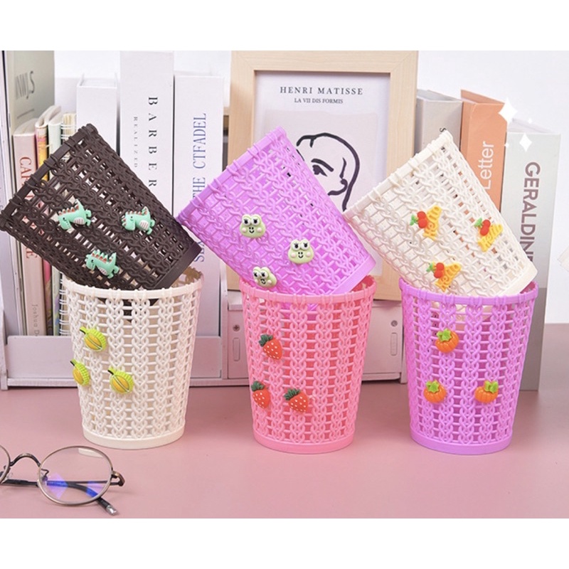 Ống Đựng Bút Gắn Sticker Dễ Thương Giỏ Đựng Cọ Đồ Dùng Đa Năng Gắn Hình Hoạt Hình