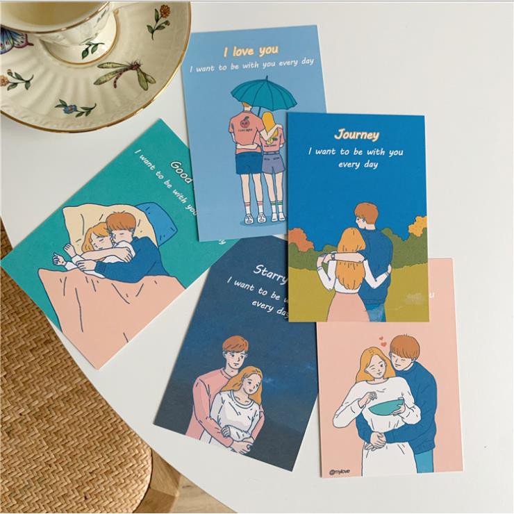 Văn Phòng Phẩm > Thư Tín > Bưu Thiếp || Postcard trang trí in hình cặp đôi đáng yêu (Set 5 hình)
