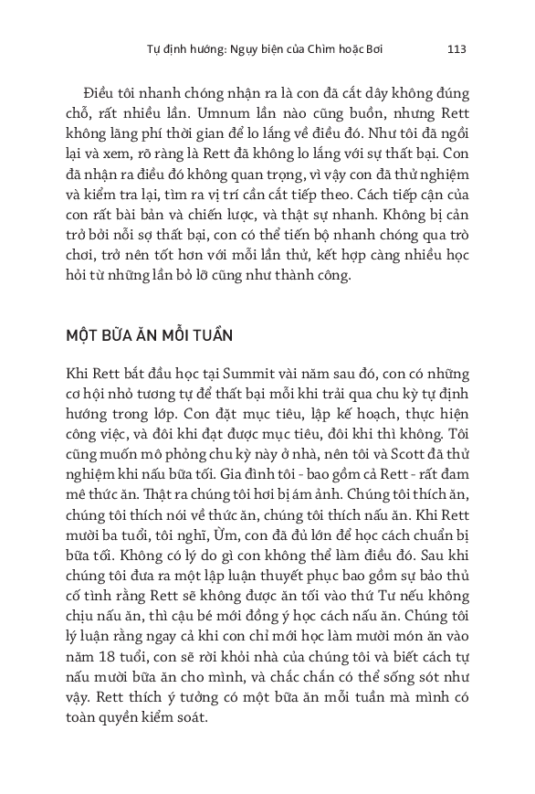 - Khuyến khích sự tự định hướng: Tác giả cho rằng việc giúp con cái tự định hướng mục tiêu và đam mê là vô cùng quan trọng. Thay vì ép buộc con theo một khuôn mẫu nhất định, các bậc phụ huynh nên tạo điều kiện để con khám phá bản thân và tìm ra con đường phù hợp.