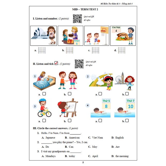Sách - Đề Kiểm Tra Tiếng Anh 4 - Học Kì 1 (1 cuốn)