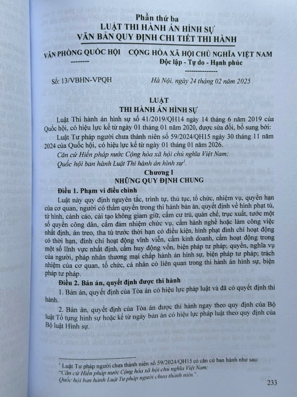 Phần thứ nhất. LUẬT TƯ PHÁP NGƯỜI CHƯA THÀNH NIÊN (sửa đổi, bổ sung năm 2025).