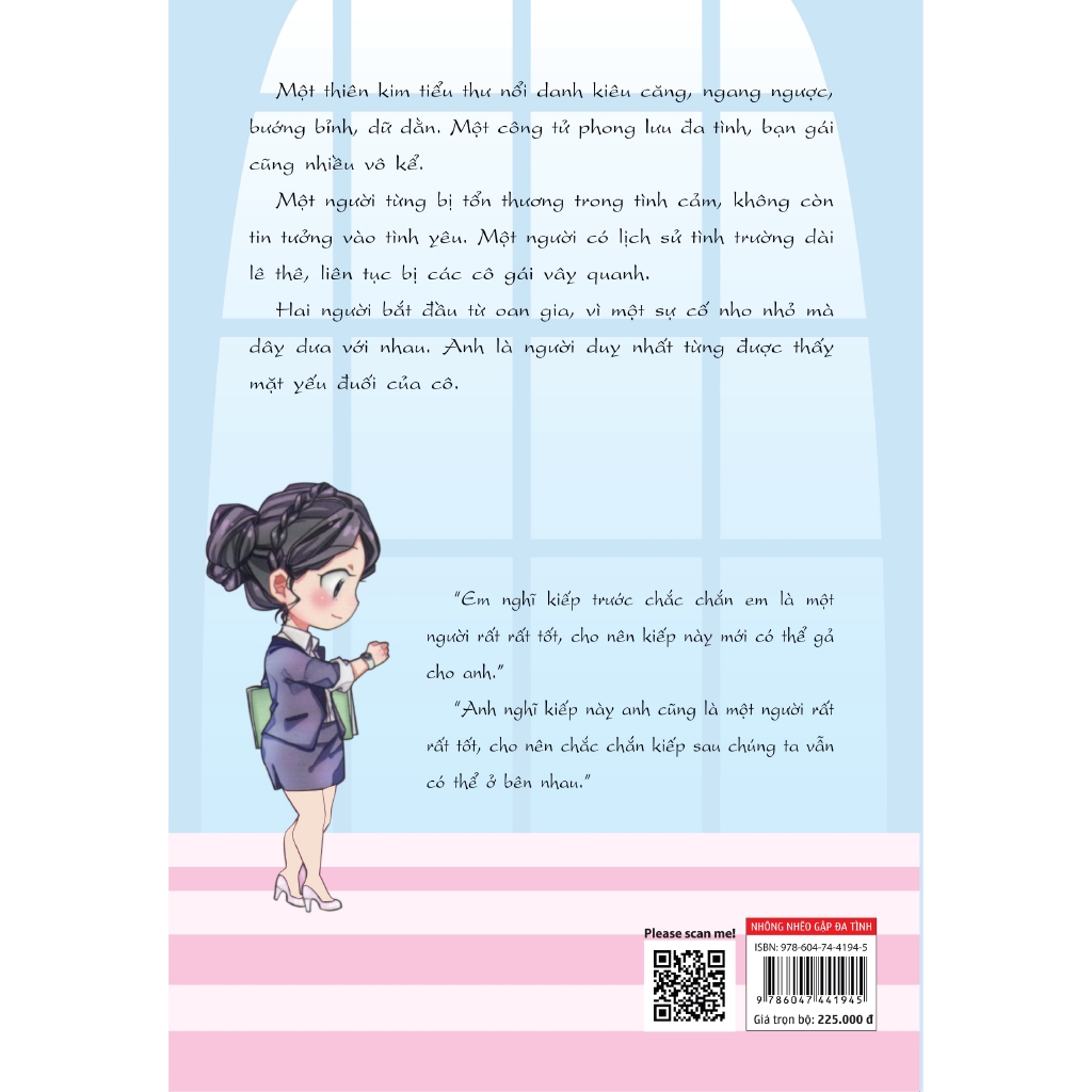 Nhõng Nhẽo Gặp Đa Tình - Bộ 2 Tập (Tái Bản) Thông tin tác giả: Minh Nguyệt Thính Phong là tác giả của bộ truyện « Nhõng nhẽo gặp đa tình », cô là một người rất thích kể chuyện, uống trà và ăn hoa quả. Ngoài sở thích trên, cô còn có đam mê làm phim ảnh và đồ thủ công. Khi nói đến phong cách viết truyện của Thính Phong, cô luôn theo phương châm « Ba không, ba có », đó là: Không độc ác, không yêu nhiều người, không bất hạnh; có tình cảm, có đam mê, có kịch tính. Thông tin tác phẩm: Một thiên kim tiểu thư nổi danh kiêu căng, ngang ngược, bướng bỉnh, dữ dằn. Một công tử phong lưu đa tình, bạn gái nhiều vô kể. Một người từng bị tổn thương trong tình cảm, không còn tin tưởng vào tình yêu. Một người có lịch sử tình trưởng dài lê thê, liên tục bị các cô gái vây quanh. Cốt truyện xoay quanh câu truyện tình yêu của cặp đôi oan gia, vì một sự cố nho nhỏ mà dây dưa với nhau. Trong khi, Tần Vũ Phi cố gắng trốn tránh, Cố Anh Kiệt lại ra sức theo đuổi. Hai con người mang theo sự do dự, đấu tranh tâm lý, cố gắng nhắc nhở bản thân không nên dính dáng đến người kia nhưng đến cuối cùng vẫn không thể chiến thắng được lý lẽ của con tim. Tình yêu của họ bên vững bởi sự lắng nghe, chia sẻ, vì đối phương mà thay đổi bản thân để hòa hợp và cùng nhau cố gắng. “ Em nghĩ, kiếp trước chắc chắn em là một người rất tốt, cho nên kiếp này mới có thể gả cho anh.” “Anh nghĩ, kiếp này anh cũng là một người rất tốt, cho nên chắc chắn kiếp sau chúng ta vẫn có thể ở bên nhau.”