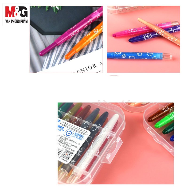 Sáp Màu M&G AGMX4323 bộ 12 màu màu dạng vặn, có hình bông hoa