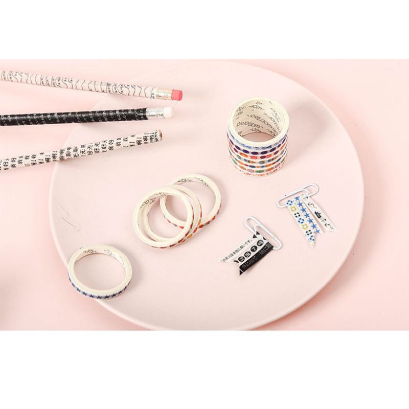 Set 10 cuộn băng dính washi tape 5mmx2m trang trí sổ