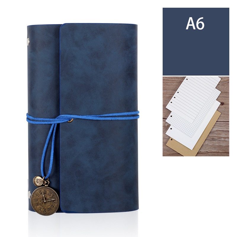 Giới thiệu sản phẩm Sổ tay bìa da PU SOSAMA sổ ghi chép, nhật ký, lưu bút gáy còng size A6 phong cách vintage đồng hồ SN-001307