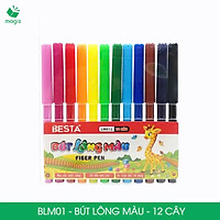 BLM01 - 12 cây bút lông màu, bút dạ màu sắc tươi sáng, an toàn cho bé
