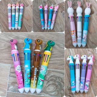 Bút Bi 10 Màu Kiểu Hoạt Hình Xinh Xắn Dễ Thương, bút bi bấm 10 màu cho bé, bé vừa học vừa chơi