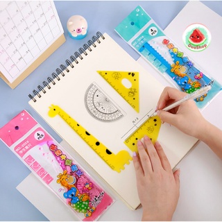 Bộ Eke Thước Kẻ Học Sinh 4 Món Dẻo Mềm Không Gãy, Có Túi Đựng Họa Tiết Theo Sở Thích