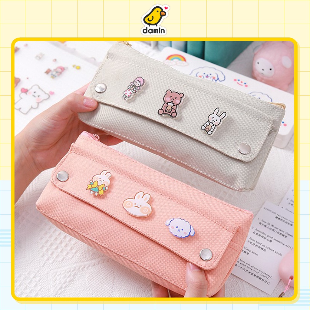 Văn Phòng Phẩm > Thiết Bị Trường Học > Hộp Bút || (Tặng kèm huy hiệu) Túi Đựng Viết Bóp Viết Vải Canvas Ngang Tiện Lợi CUTE