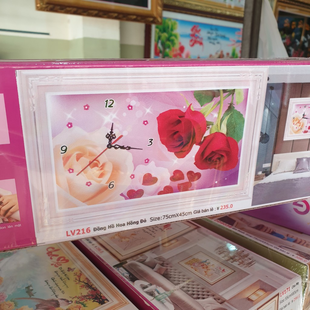 Nhà cửa & Đời sống > Trang trí nhà cửa > Khung ảnh & vật trang trí tường || Tranh Đính Đá ĐỒNG HỒ HOA HỒNG (ĐÁ ABC CAO CẤP). Kích Thước: 75cm x 45cm