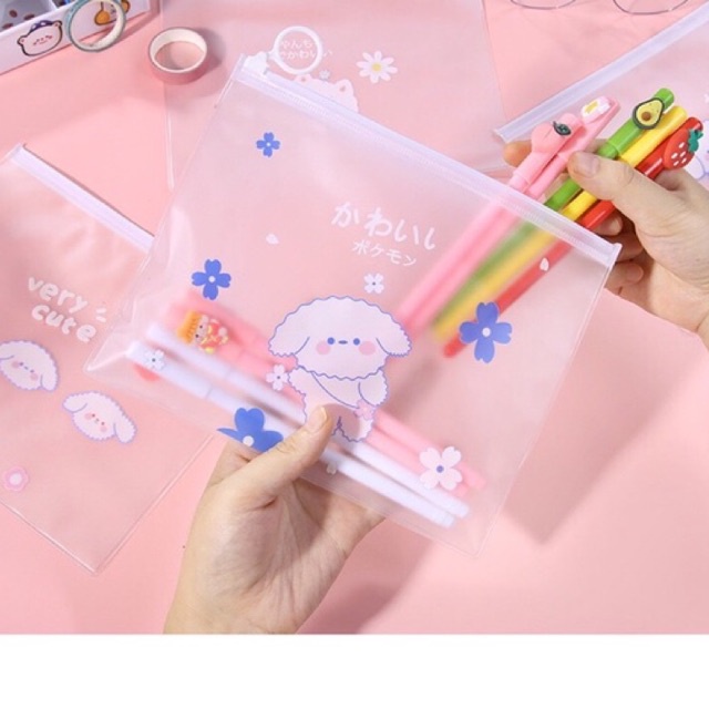 TÚI ĐỰNG BÚT TRONG SUỐT ZIPPER HÌNH THÚ DỄ THƯƠNG