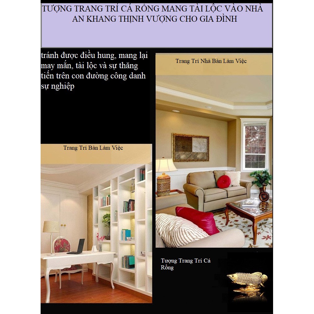 Trong phong thủy, bày trí cá rồng trong nhà hoặc cơ quan sẽ giúp tránh được điều hung, mang lại may mắn, tài lộc và sự thăng tiến trên con đường công danh sự nghiệp. Đây chắc chắn sẽ là món quà tặng quý giá dành cho các vị lãnh đạo, đối tác và người thân trong các dịp lễ, tết.