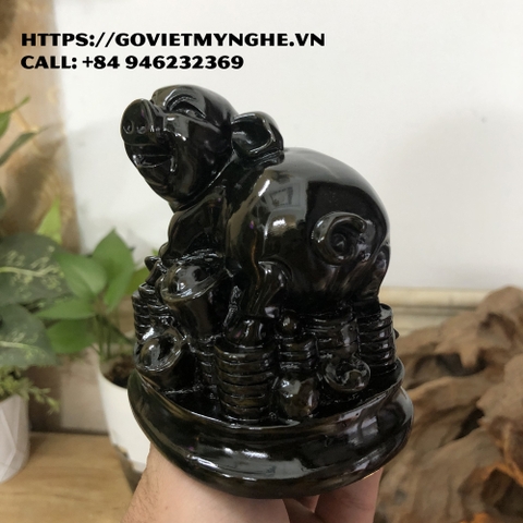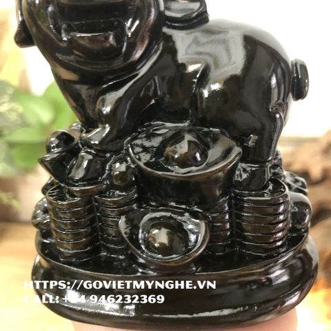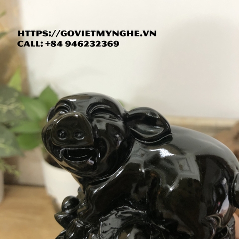 Giới thiệu Tượng đá con Heo tượng đá trang trí phong thủy bàn làm việc cho tuổi Hợi - Chiều cao 11cm - Màu nâu đen