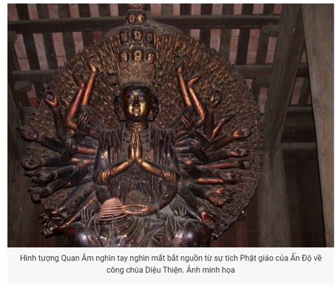 + Ở Việt Nam, hình tượng này có từ thời Lý, Trần và đạt tới đỉnh cao nghệ thuật vào thế kỷ 17 với tượng Phật Quan Âm ở chùa Bút Tháp. Theo kinh điển của phái Mật tông, trong quá khứ xa xôi, Quan Âm được nghe Thiên quan Vướng Tĩnh Chú Như Lai giảng về Đại Bi Tâm Đà la Ni, sau đó đã xuất hiện trên người nghìn mắt để thấy khắp thế gian và nghìn tay để cứu vớt chúng sinh.