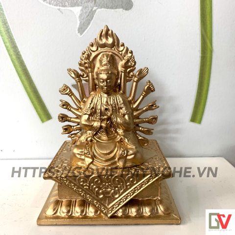 Tượng đá Phật bà Quan Âm nghìn mắt nghìn tay - 2 Mặt - Màu nhũ đồng