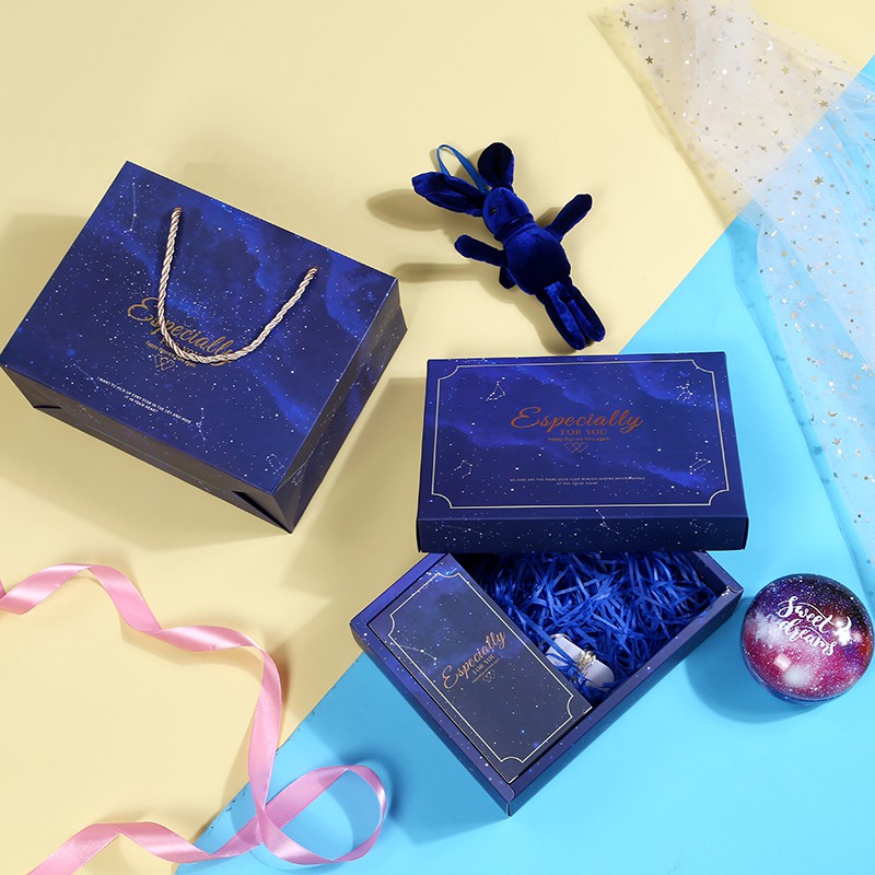Bộ túi giấy +Hộp quà lớn quà tặng hoạ tiết cẩm thạch, In chữ Especially For You phong cách châu Âu (Có xé lẻ). Hoạ tiết Thiên hà Galaxy màu xanh dương rất đẹp và sang. Đảm bảo tính thẩm mỹ cũng như chất lượng.